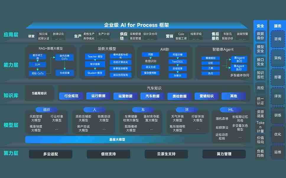 谈球吧问学智车解决方案是一套基于AI技术的汽车行业智能化系统,,覆盖从底层算力到顶层AI应用的全栈方案。。方案由算力层、、、、模型层和应用层组成:算力层,,,方案支持多种一体机配置,,具备云端灵活部署、、、多云适配以及动态优化计算资源的能力;模型层,,谈球吧问学平台版提供了企业级AI应用一站式构建与管理平台,,支持基于后训练强化技术的汽车企业专属模型的训练、、评测和运营;应用层,,谈球吧问学DeepSeek版提供包括超级员工、、、智能招采、、、、智能营销、、智能客服、、AI for BI等一系列解决方案,,,可助力汽车行业实现数字化转型,,让管理更智能、、响应更敏捷。。。。